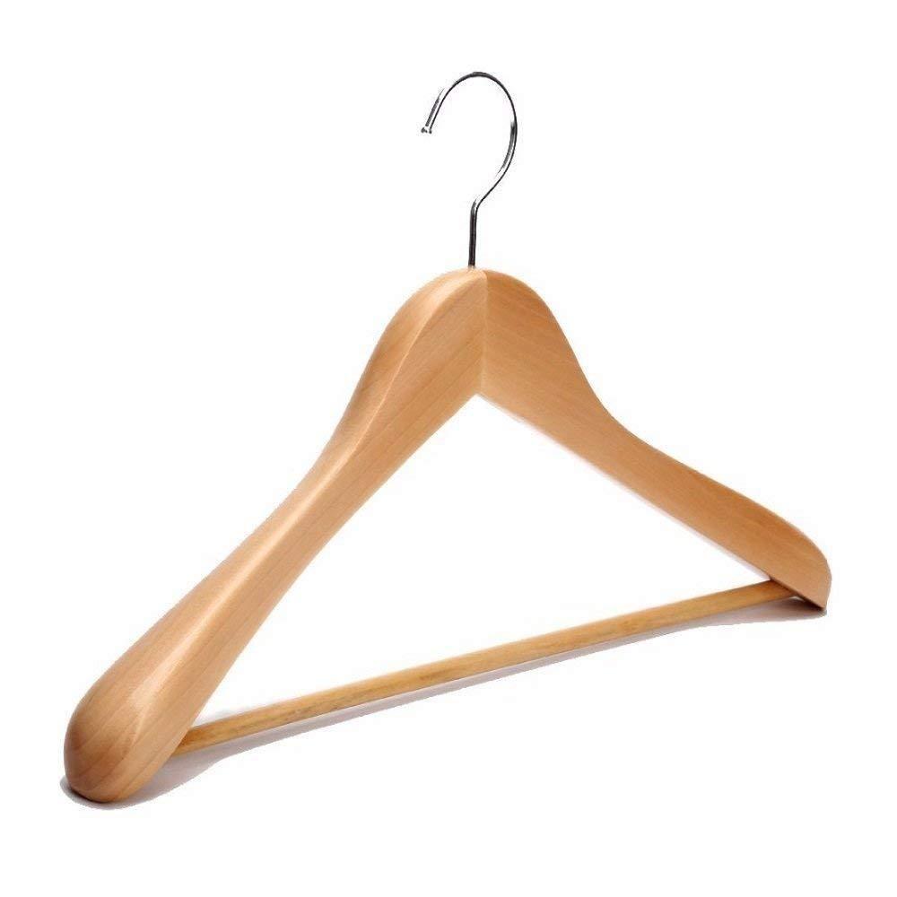 - Fit all closets with flexible use, wooden hangers with reasonable Price, be a great décor to your wardrobe, Save hanging space in closet by keeping coordinating suit components stored on a single hanger
